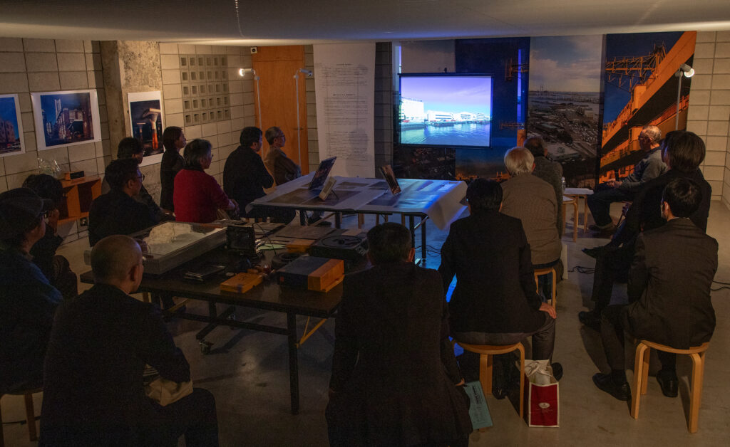 1982年以降に撮影された横浜の新港埠頭とその周辺、山下埠頭、帝蚕倉庫、鶴見の大黒埠頭、そして、横須賀、芝浦の倉庫風景写真のスライドショーを行った。